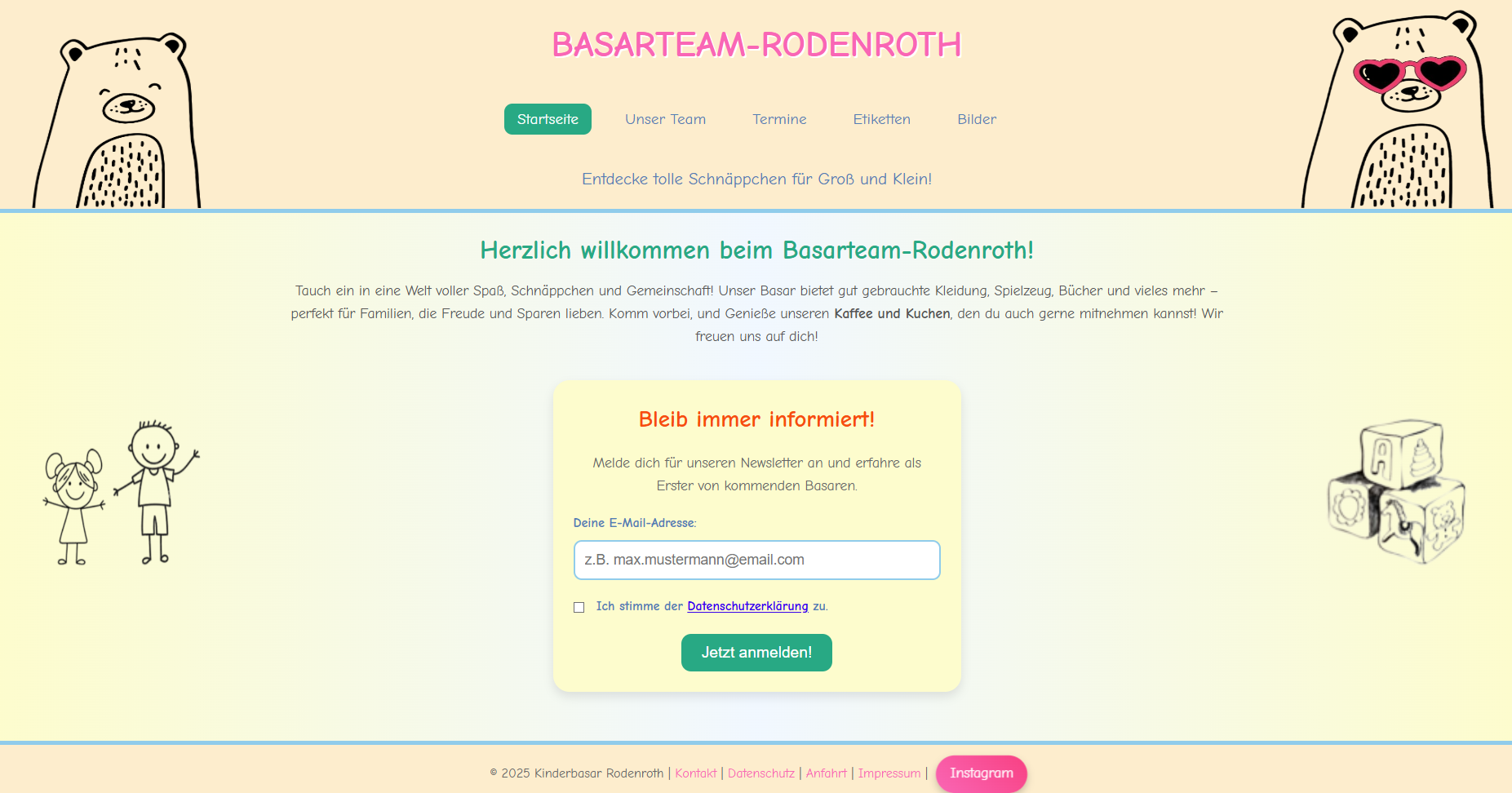 Eine moderne, benutzerfreundliche Website für den örtlichen Kinderbasar mit intuitiver Plattform für Verkäufer und Käufer.