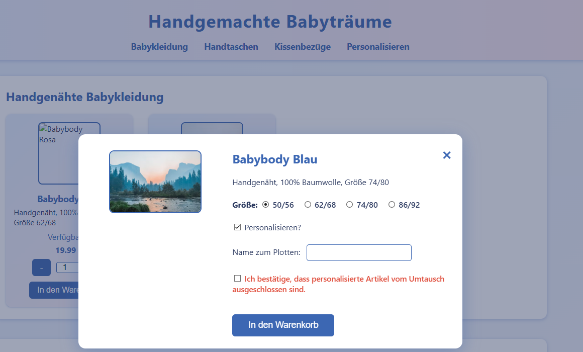 Moderner Onlineshop für handgemachte Kinder- und Babykleidung.